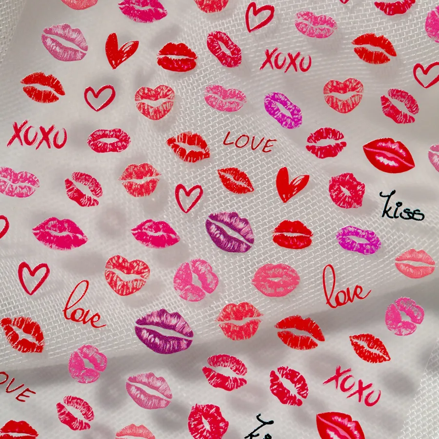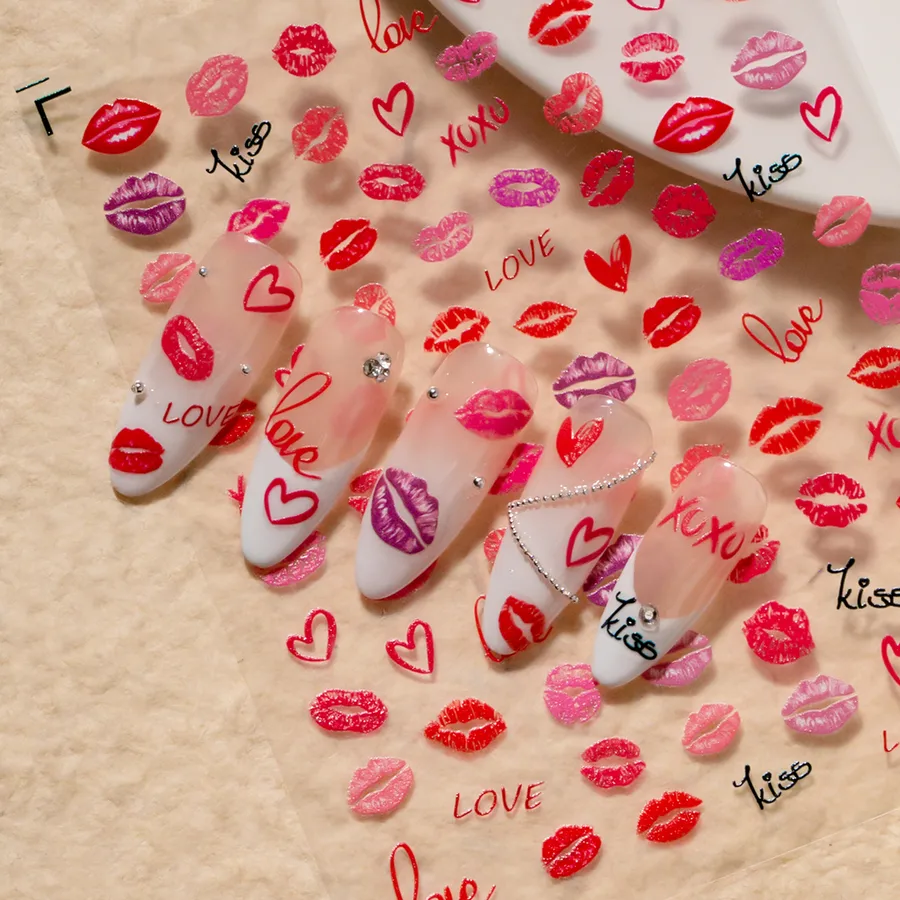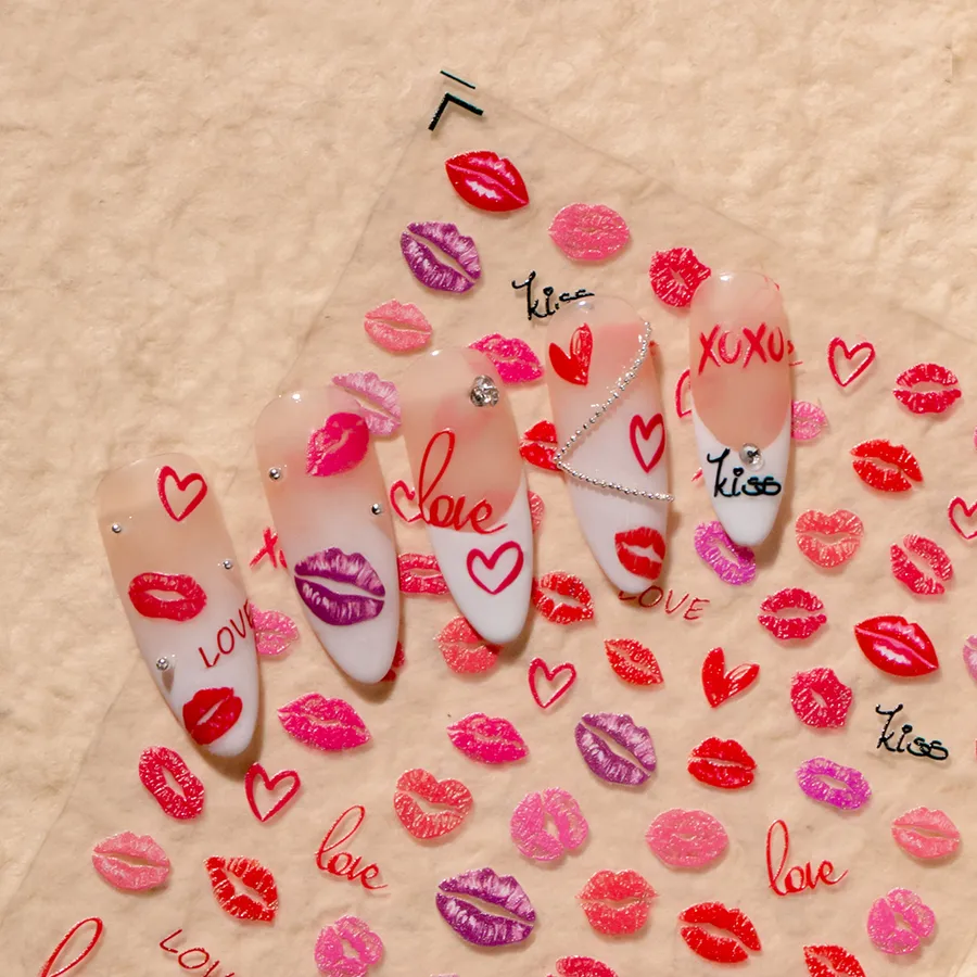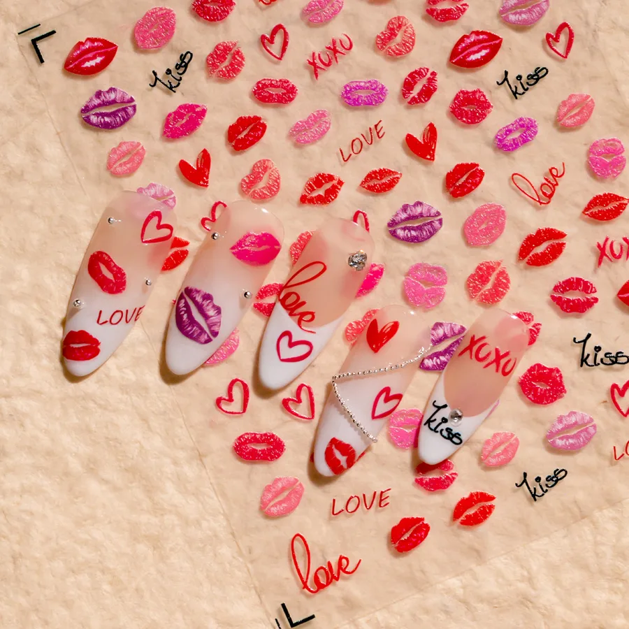 Valentine’s Day Nail Stickers with Lips, Hearts, Letters/Sweet Resin Material Suitable for Valentine’s Day Themed Nail Art